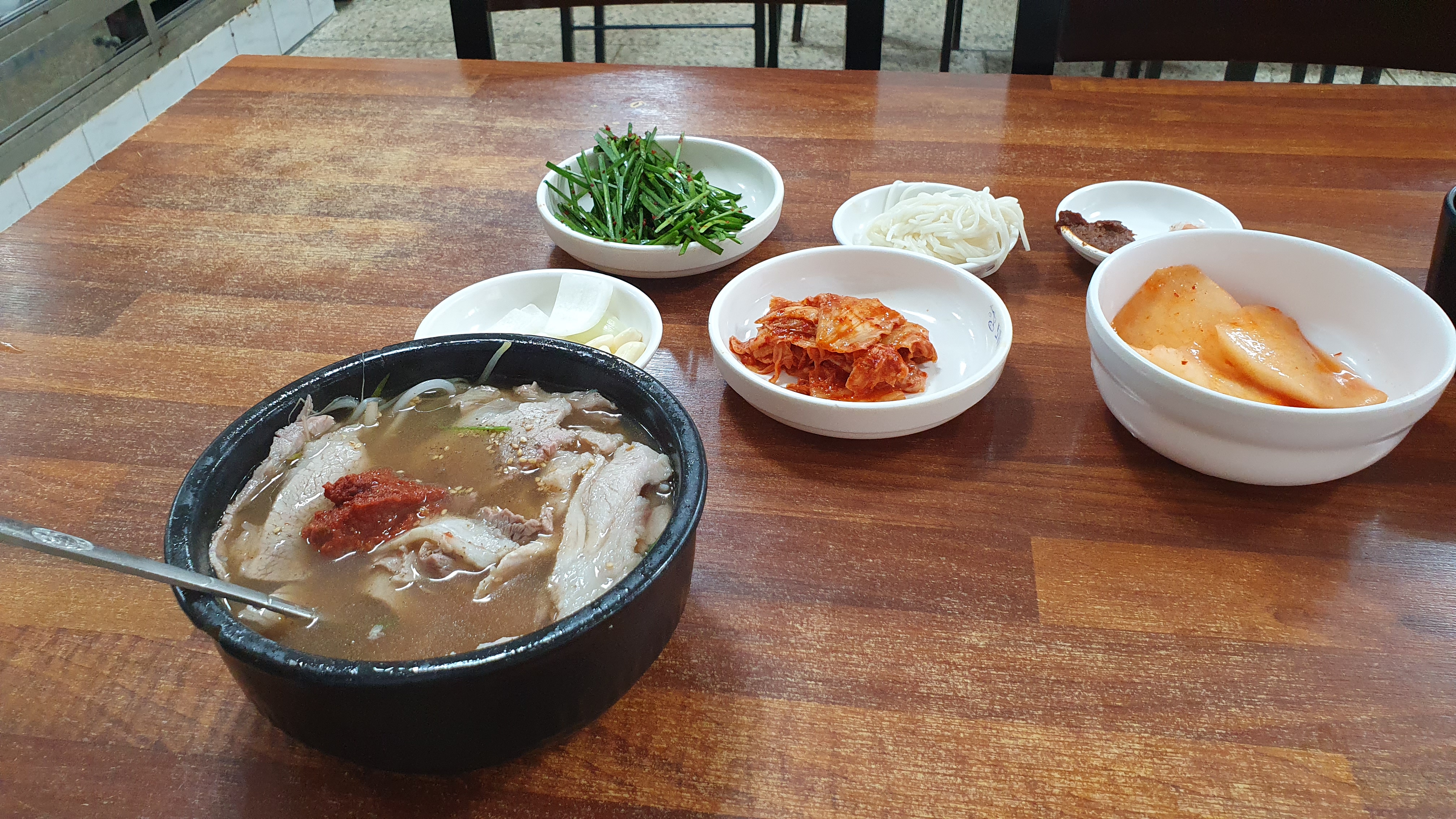 대부분 이 부추 무침이 돼지국밥 집에 다 나오는데요, 그게 집마다 맛이 오묘하게 다 다릅니다.