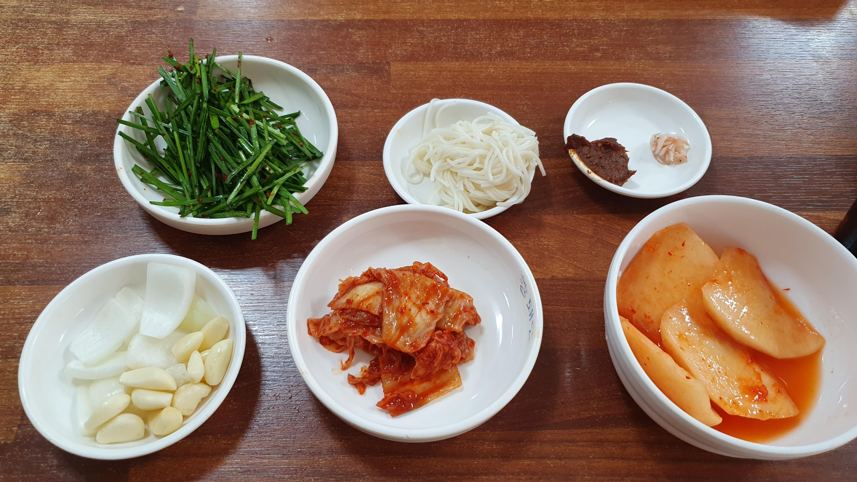 돼지국밥 기본 반찬 구성입니다.